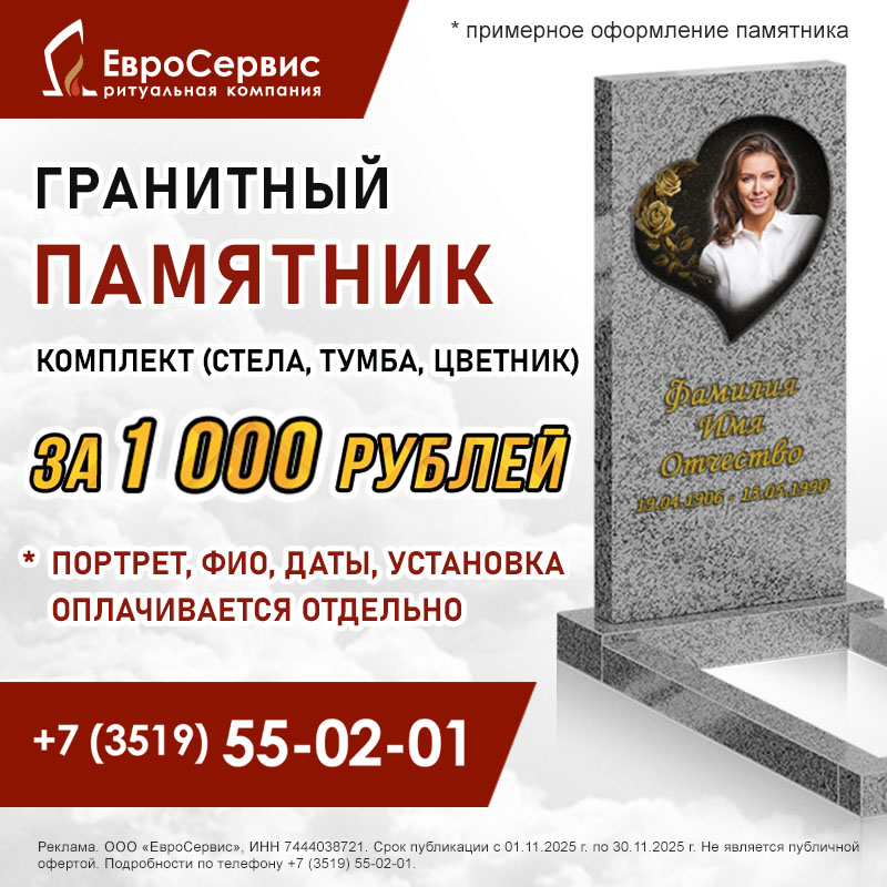 Реклама. ООО «ЕвроСервис», ИНН 7444038721. Срок акции с 01.11.2025 до 30.11.2025 г. Есть товары-исключения, количество товаров ограничено. Не является публичной офертой. Подробности по телефону: +7 (3519) 55-02-01.